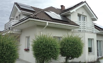Elewacja: tynk, budynek ocieplony(styropian 25 cm), malowana.