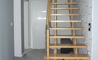 Schody wewnętrzne: na piętro(drewniane, jednobiegowe z drewnianą balustradą).
