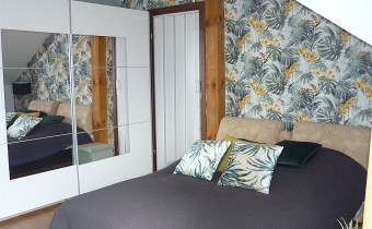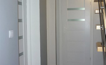 W garderobie: na podłodze(panele), ściany(w gładzi, malowane).