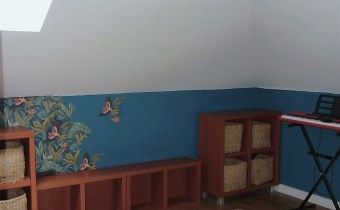 W pokoju: na podłodze(panele), ściany(w gładzi, malowane).
