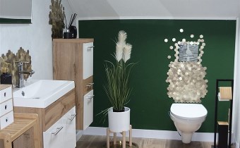 Wyposażenie łazienki kabina prysznicowa, lustro, umywalka, wanna, WC