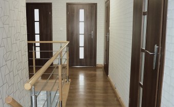 W pokojach: na podłodze(panele), ściany(częściowo tapeta, w gładzi, malowane).