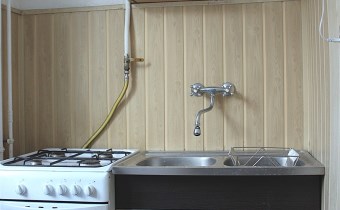 W mieszkaniu pozostaje sprzęt kuchenny: kuchnia gazowa, lodówka, zlewozmywak z baterią.