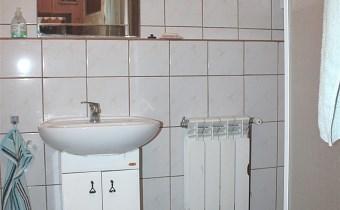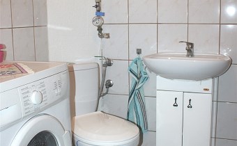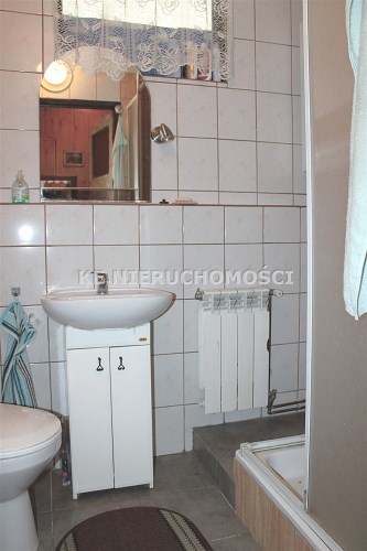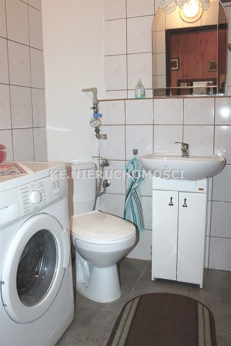 W łazience z WC: kabina prysznicowa, umywalka z szafką, toaleta, lustro, pralka(Beko), piec gazowy - nowy(dwufunkcyjny).