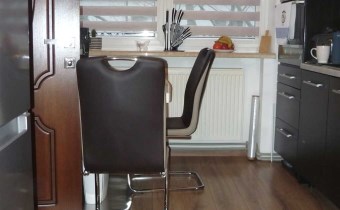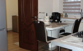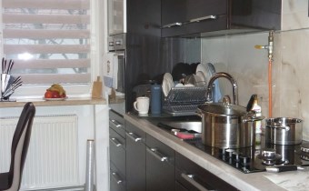 W kuchni: szafki stojące i wiszące, piec gazowy dwufunkcyjny(z zamkniętą komorą spalania).