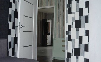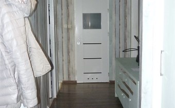W przedpokoju: na podłodze(panele), ściany(tapeta), sufit(panele) - 8,14 m2.