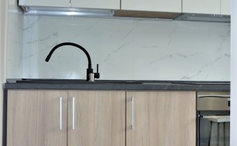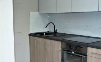 W mieszkaniu pozostaje zabudowa kuchenna ze sprzętem: płyta elektryczna, piekarnik, okap, lodówka, zlewozmywak z baterią.