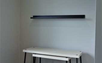 W kuchni: 2 stoliki, 2 taborety, półka.